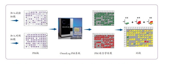 PM可用來測定微生物細胞的表型,是與DNA芯片和蛋白質組技術并列的、應用在基因組研究和藥物開發的三大技術之一。PM技術可以迅速、簡單、準確、高效的以同一標準模式同時測試幾千種細胞代謝表型。通過對活體細胞進行測試,可以檢測細胞基因變化、用藥甚至環境變化后 所引起的細胞代謝表型的變化情況。該技術是分子方法(如:DNA芯片和蛋白質組等方法)非常有力的支持和補充 手段,在其強大軟件的支持下能迅速、準確的獲得很多非常有用的信息。同時為下一步更加深入的研究指明方向,同時提供強大的數據支持。