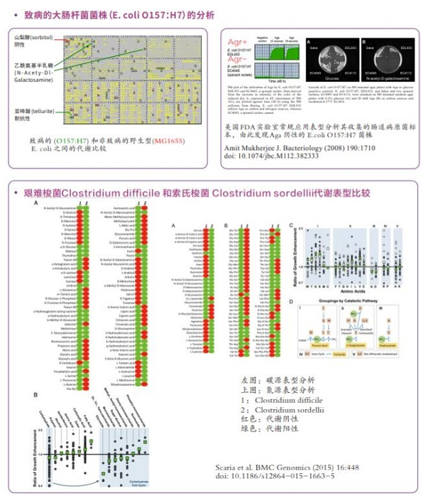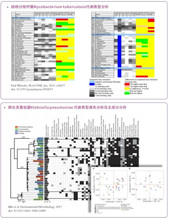 通過分子生物學手段往往無法區分同種微生物的不同菌株,更無法對相同菌株在不同環境下的特性進行對比分析,而PM系統則可快速鎖定其代謝差異,為后期進一步的研究指明方向并提供相應數據。特別適合微生物代謝、致病機理研究以及進行流行病學分析。