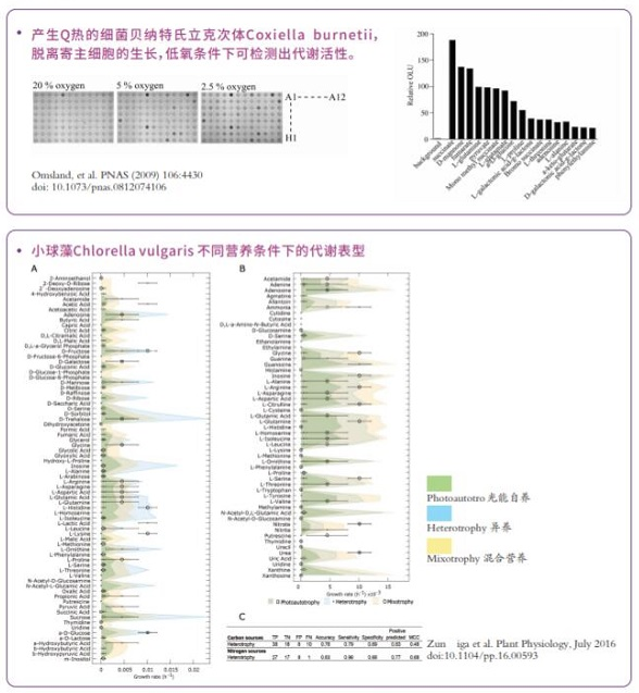 PM系統除了常用與細菌.真菌等微生物的表型測試研究外,還可用于立克次氏體、噬菌體等不易培養的微生物的表型測試。此平臺具有廣泛的可擴展的潛力,可用于測試幾乎所有種類微生物的表型,甚至還能用于小球藻等單細胞生物的研究。